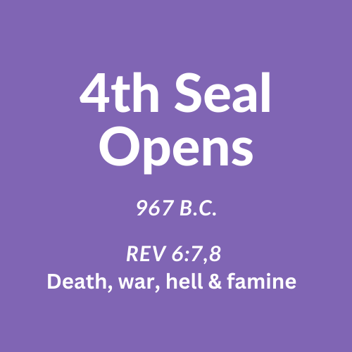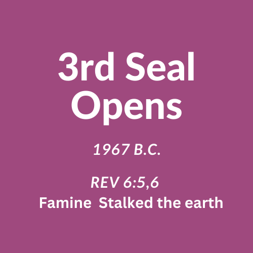 2967 B.C. 2nd Seal Opens – War Raged; Rev 6:3,4 WHAT ARE THE SEVEN SEALS? The seven seals are the history of man, on earth and in heaven, and are covering our past, present, and future events. For example, the 1st Seal was opened in the year 3967 B.C. and…